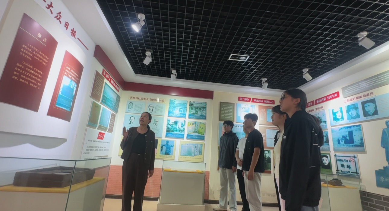 在中共中央山东分局旧址,党员教师通过“实物教学+故事讲解”,以旧址内保存的煤油灯、纺车、土制武器、战地医疗器具等实物为切入点,细致讲述抗战时期山东党组织在“缺衣少食、缺枪少弹”的极端困境下,如何带领群众开展生产自救,在艰难环境中筑牢抗日根据地“生命线”的动人故事,深化学生对伟大抗战精神的认知。