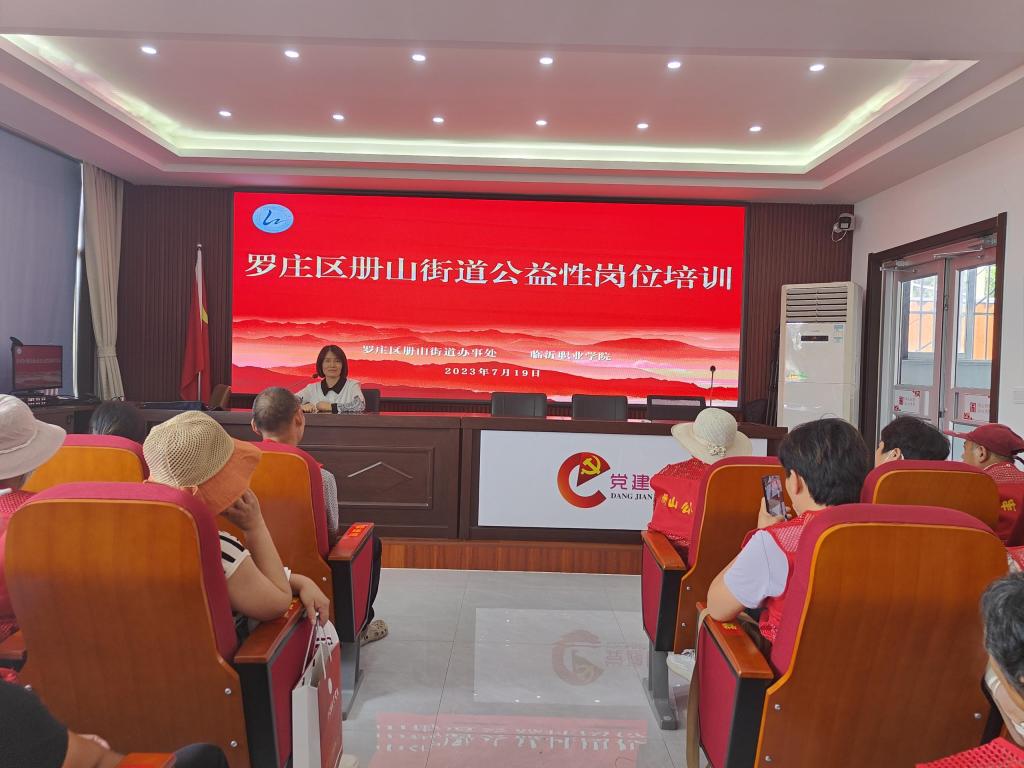 为进一步提高公共就业乡村公益性岗位安置人员的岗位适应能力和岗位专业技能,罗庄区举办了公共就业乡村公益性岗位人员岗前培训,邀请我院职业指导教研室教师巩文霞对傅庄镇、册山镇、黄山镇等5个乡镇进行主题为“恪守职业道德 明确岗位职责”的培训。