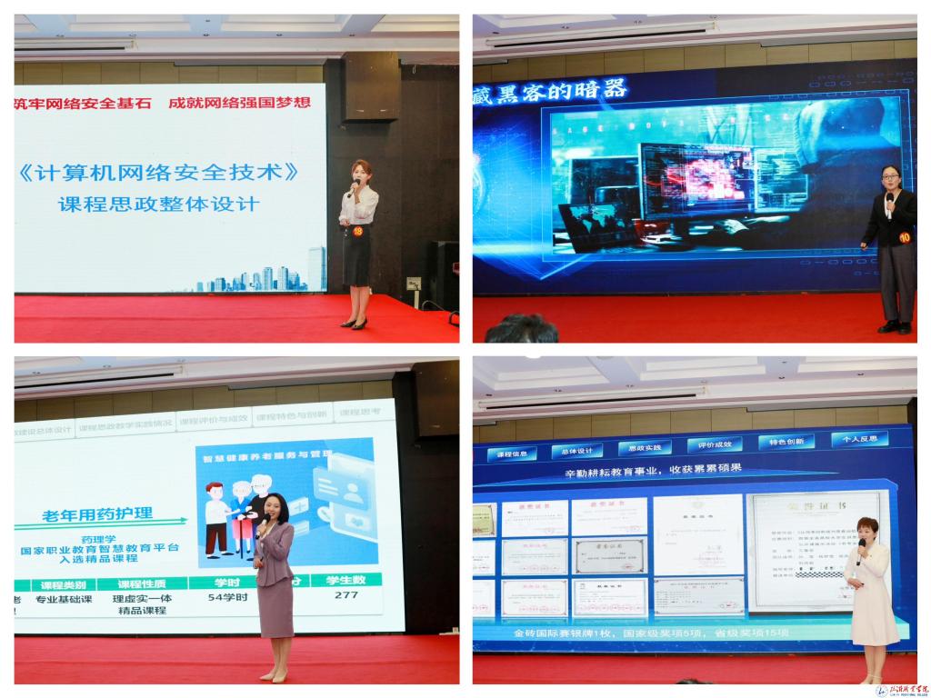 在研课会现场展示环节,会议特别邀请了第六届全国高校青年教师教学竞赛总决赛二等奖、山东高职院校课程思政研课总会决赛特等奖获得者李蓓老师进行了精彩的示范教学展示。18支课程思政教学团队从课程整体设计、课程思政教学实施、思政育人元素的挖掘、资源建设与教学评价等方面,分别进行了课程思政说课及教学展示。