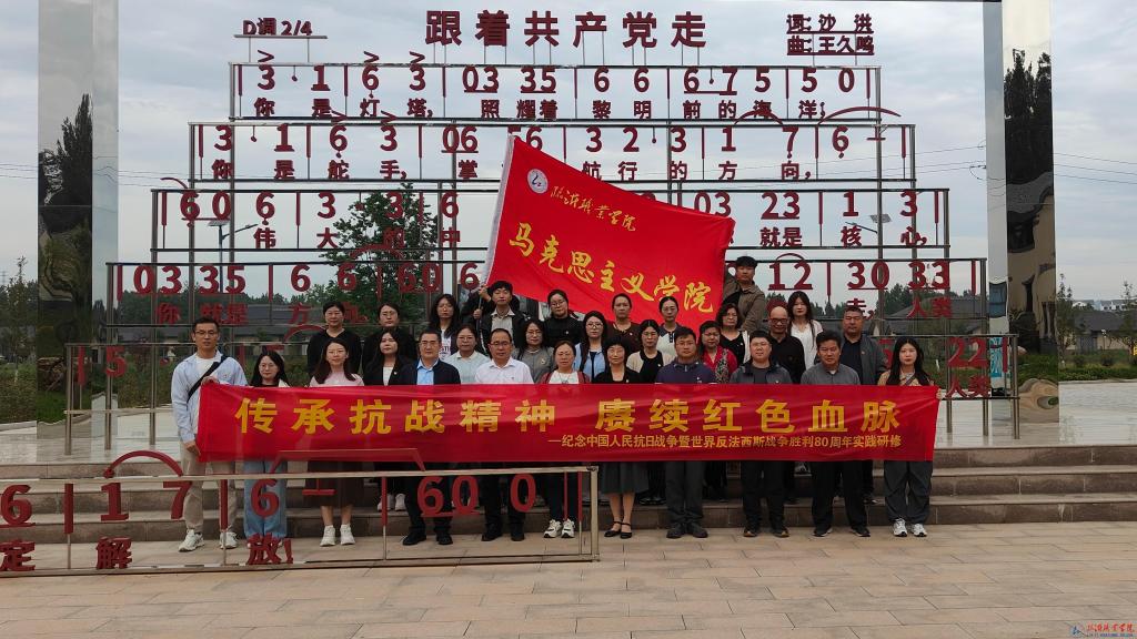 在纪念中国人民抗日战争暨世界反法西斯战争胜利80周年之际,为了铭记历史、缅怀先烈,弘扬伟大抗战精神,9月26日,马克思主义学院组织师生赴沂蒙精神教育培训中心,开展“传承抗战精神 赓续红色血脉”实践研修,在沉浸式学习中感悟沂蒙精神、筑牢理想信念。